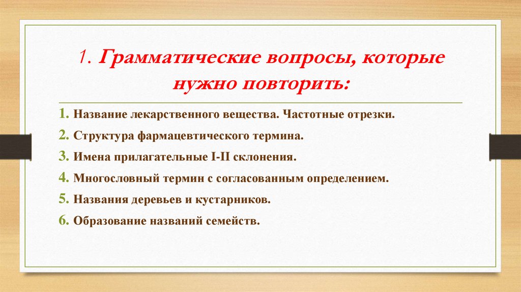 1. Грамматические вопросы, которыенужно повторить: