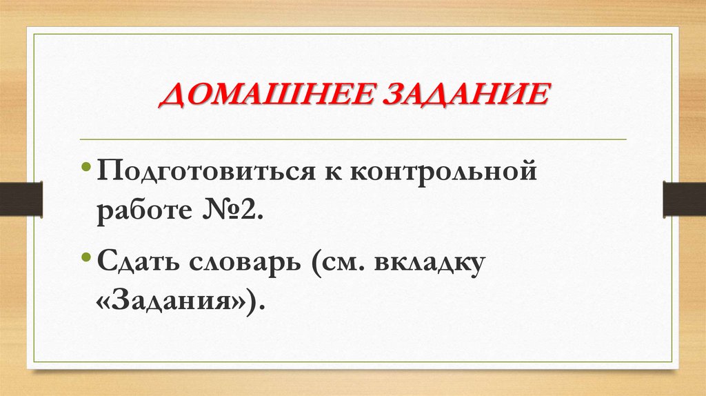 ДОМАШНЕЕ ЗАДАНИЕ• Подготовиться к контрольной