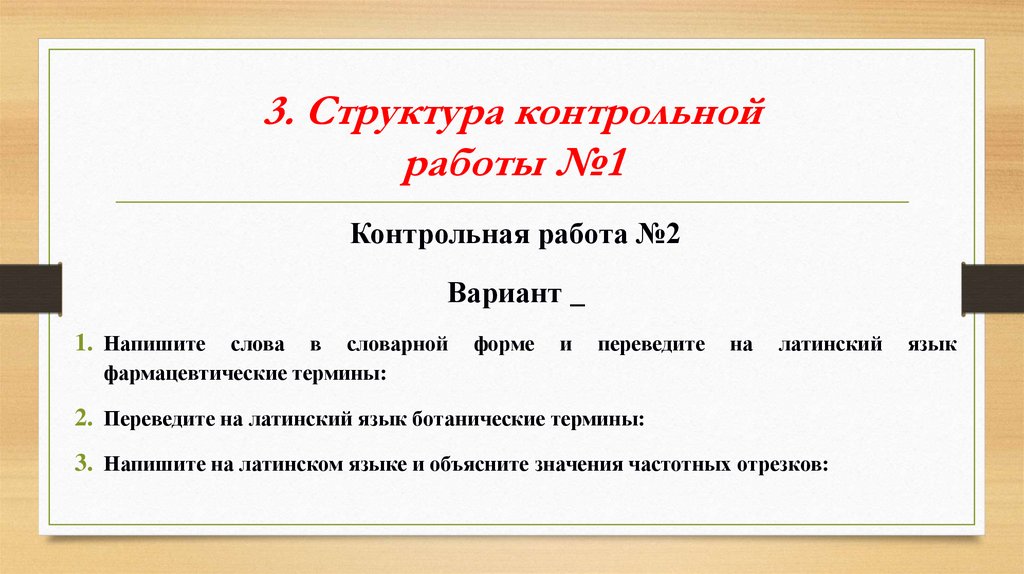 3. Структура контрольнойработы №1