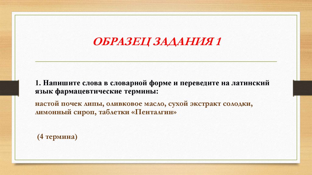 ОБРАЗЕЦ ЗАДАНИЯ 11. Напишите слова в словарной форме и переведите на латинский
