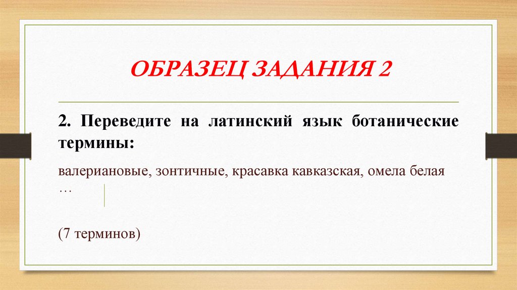 ОБРАЗЕЦ ЗАДАНИЯ 22. Переведите на латинский язык ботанические