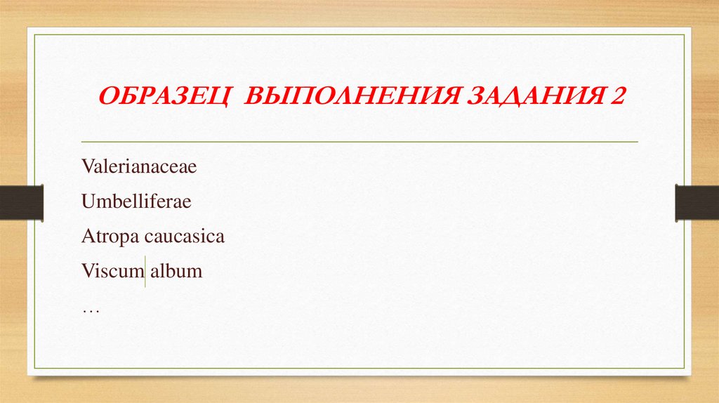 ОБРАЗЕЦ ВЫПОЛНЕНИЯ ЗАДАНИЯ 2Valerianaceae