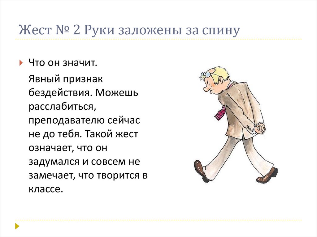 Жест № 2 Руки заложены за спинуЧто он значит.