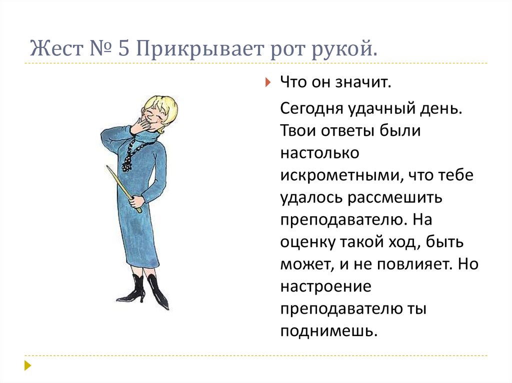 Жест № 5 Прикрывает рот рукой.Что он значит.