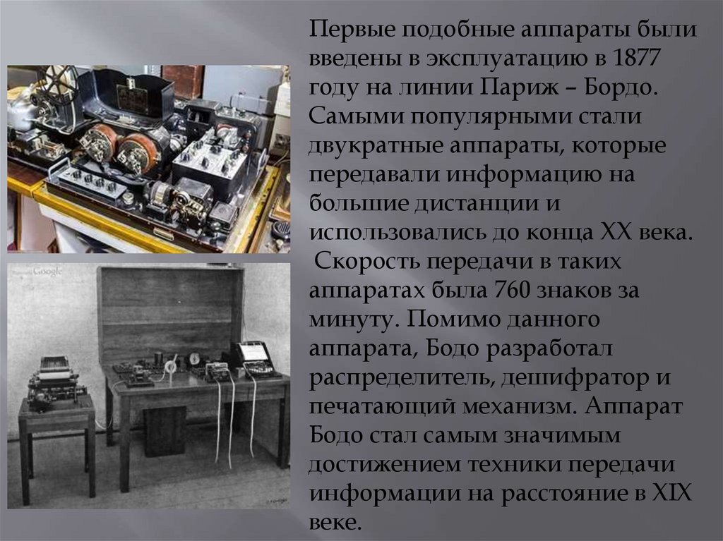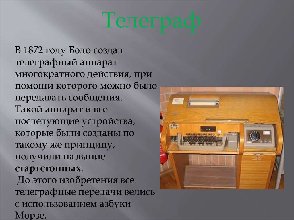 ТелеграфВ 1872 году Бодо создал