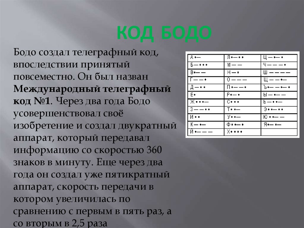 КОД БОДОБодо создал телеграфный код,