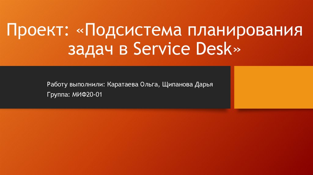 Проект: «Подсистема планированиязадач в Service Desk»