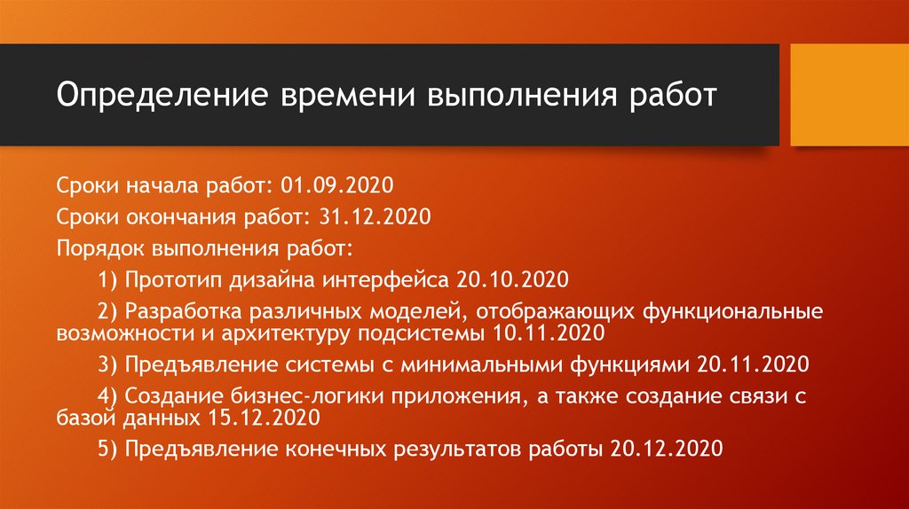 Определение времени выполнения работСроки начала работ: 01.09.2020