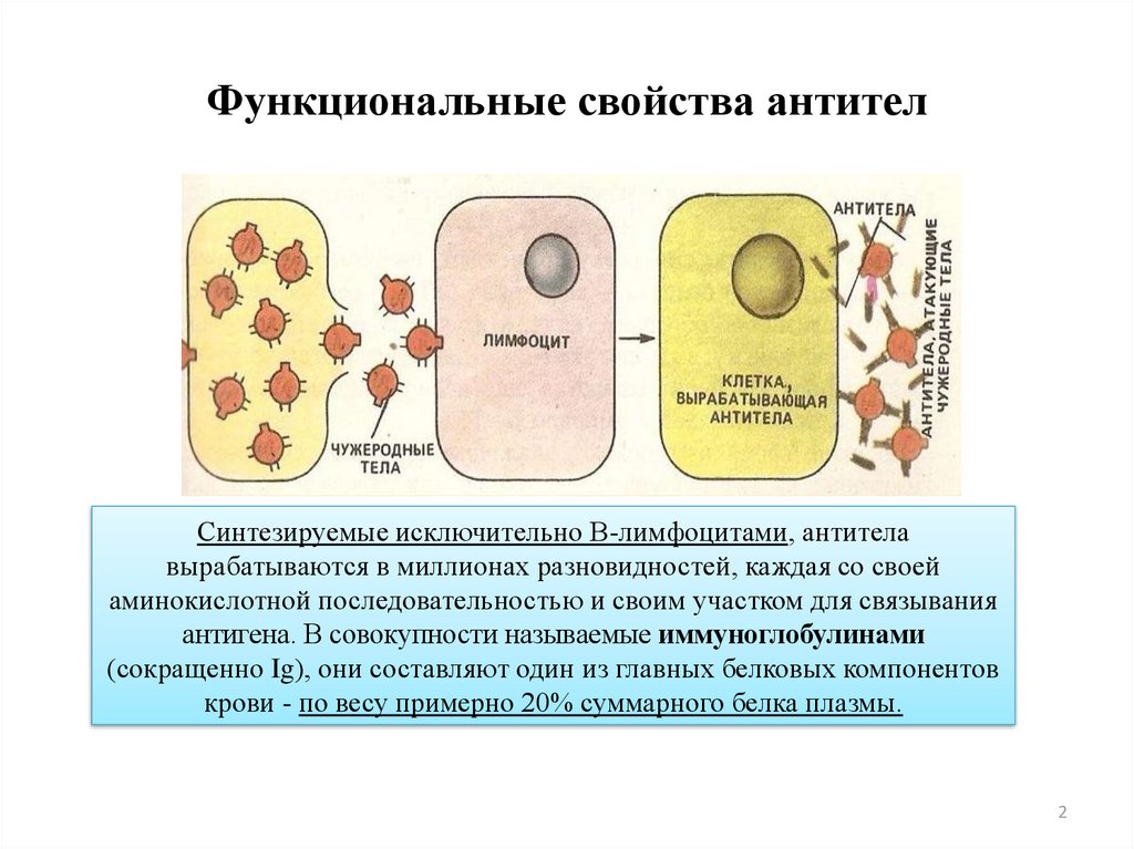 Функциональные свойства антителСинтезируемые исключительно В-лимфоцитами, антитела