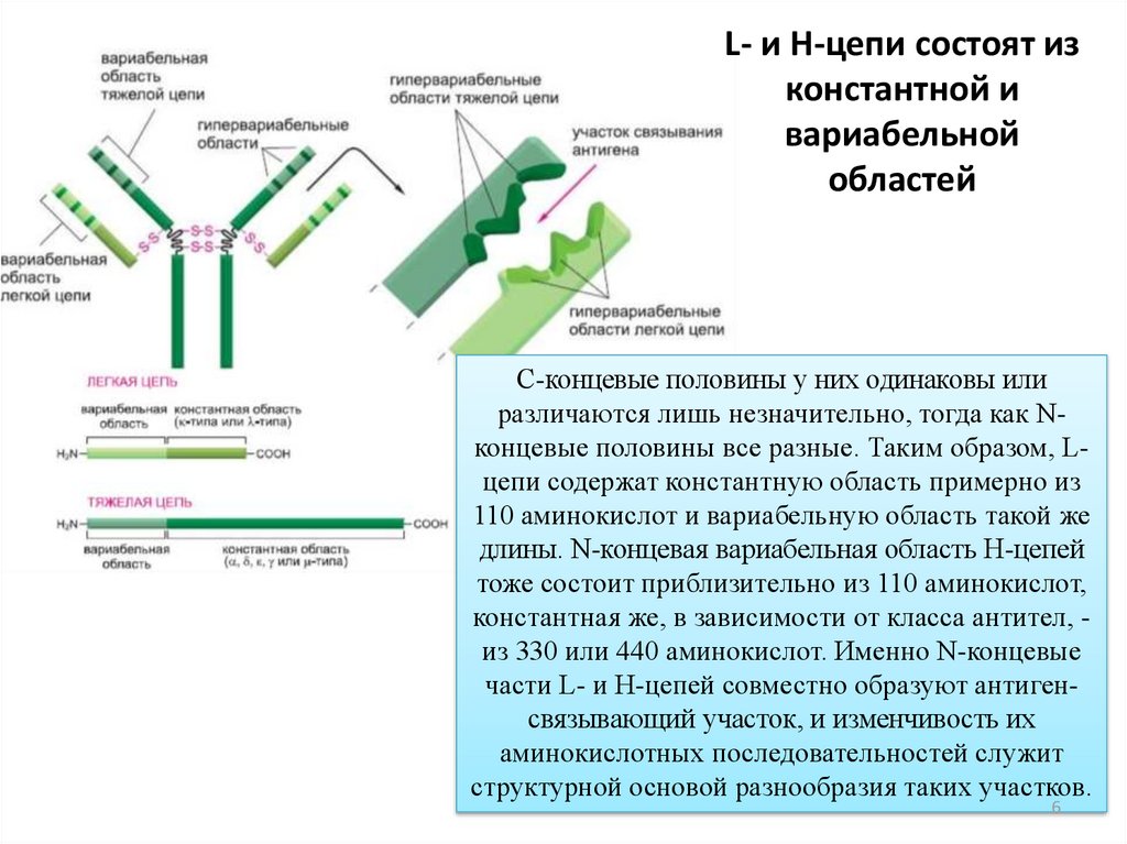 константная же, в зависимости от класса антител, из 330 или 440 аминокислот. Именно N-концевые