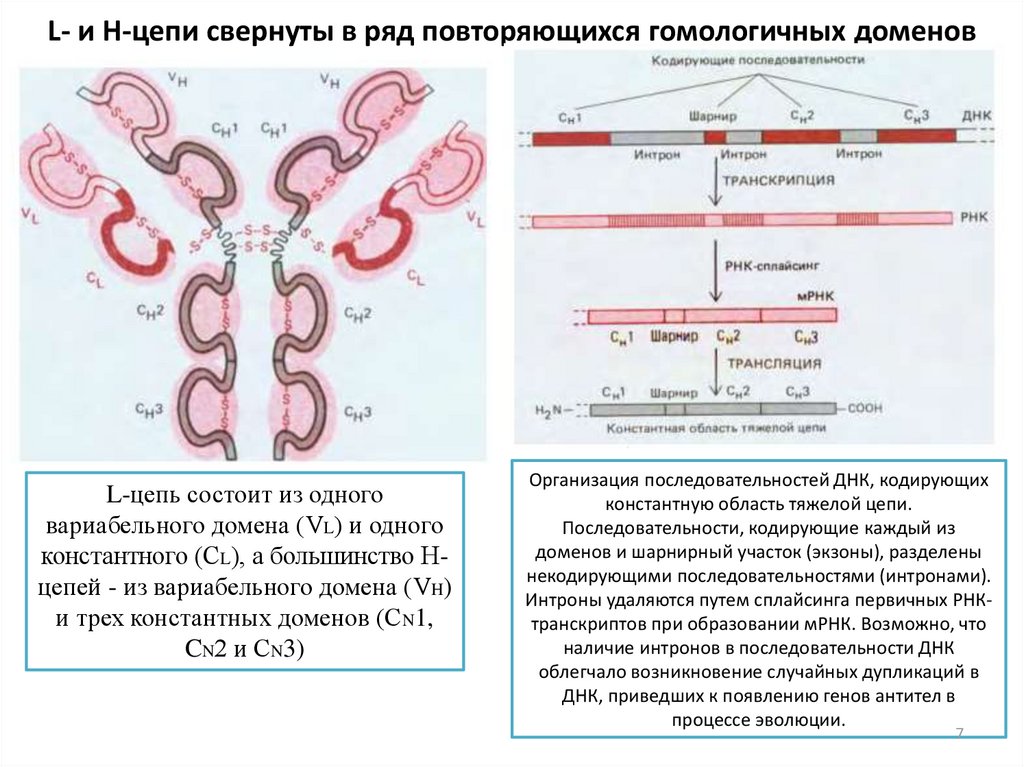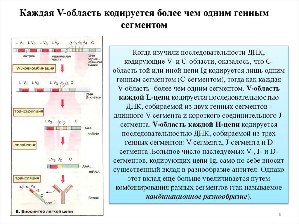 ДНК, собираемой из двух генных сегментов длинного V-сегмента и короткого соединительного Jсегмента. V-область каждой Н-цепи кодируется