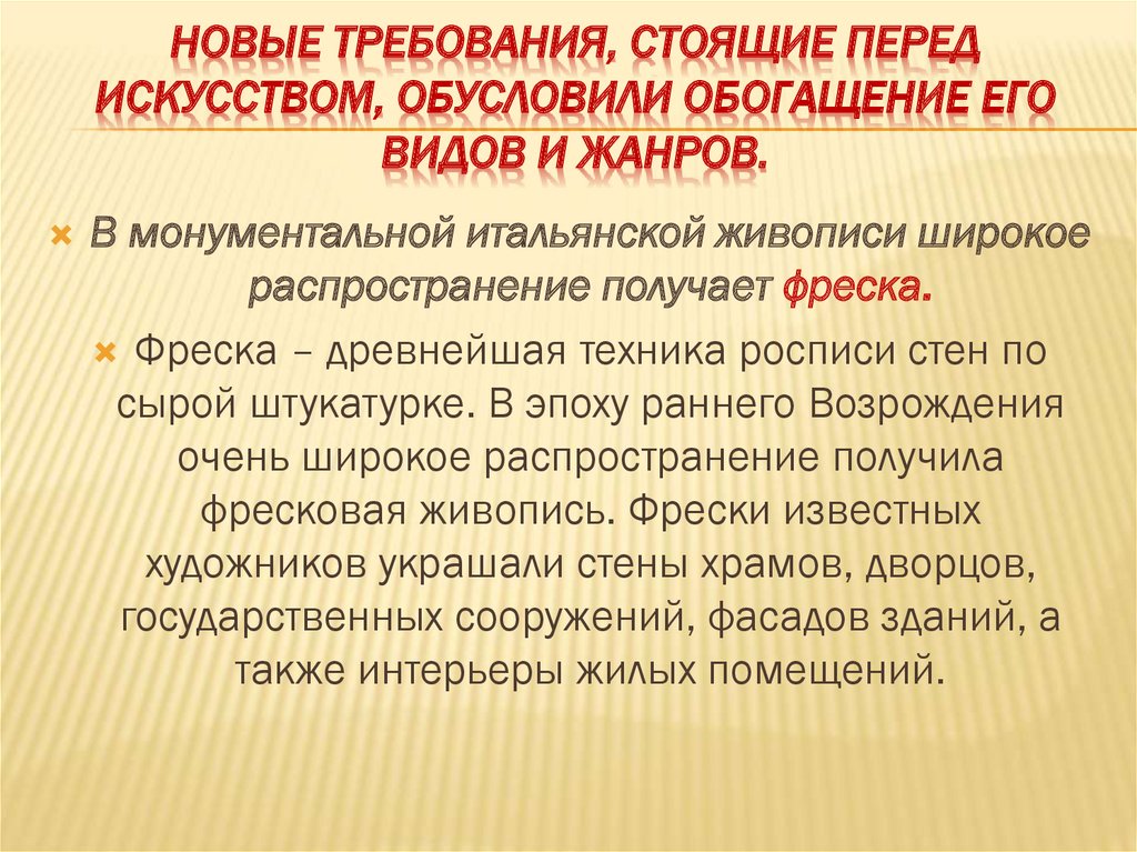 распространение получает фреска.
