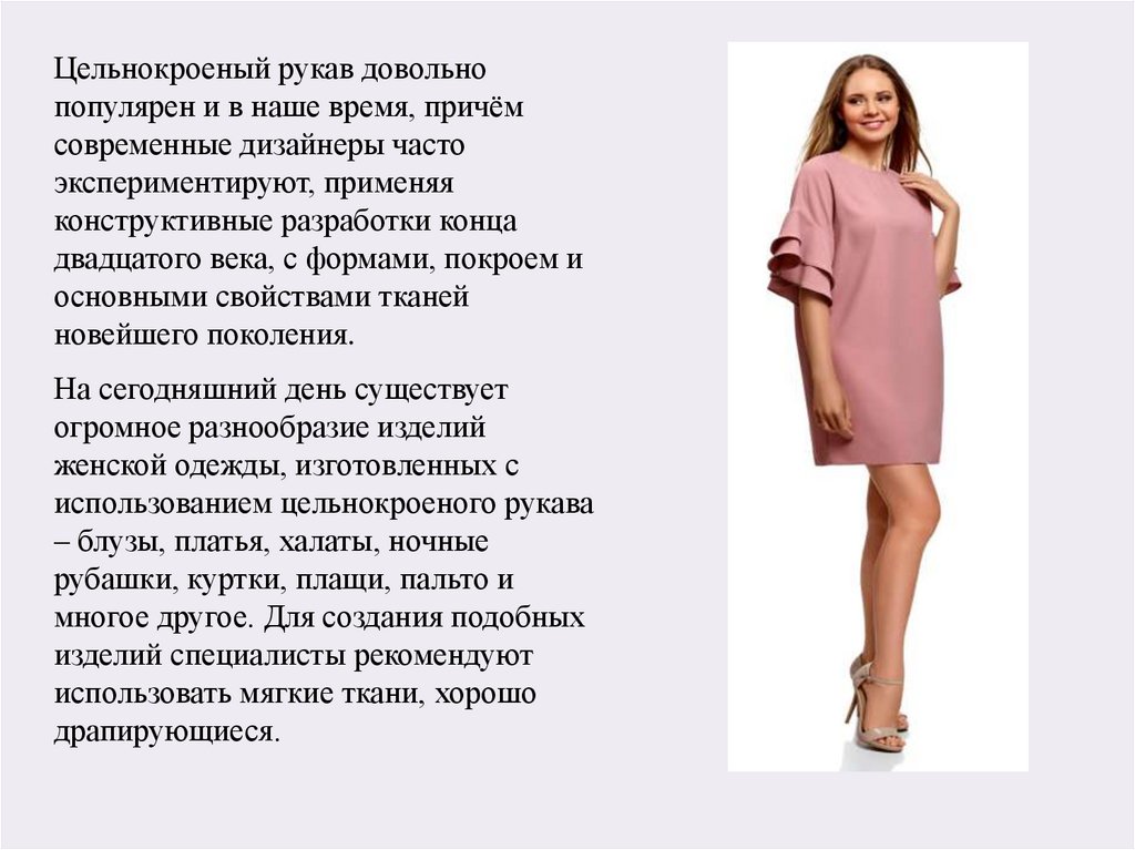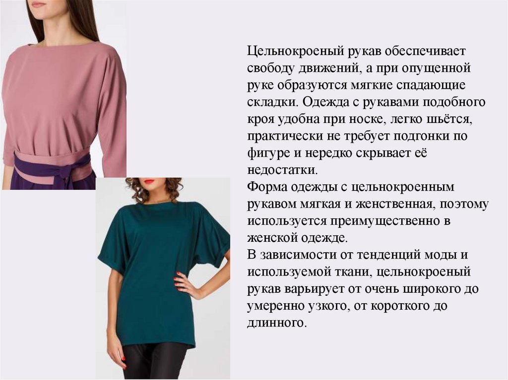 Цельнокроеный рукав довольнопопулярен и в наше время, причём