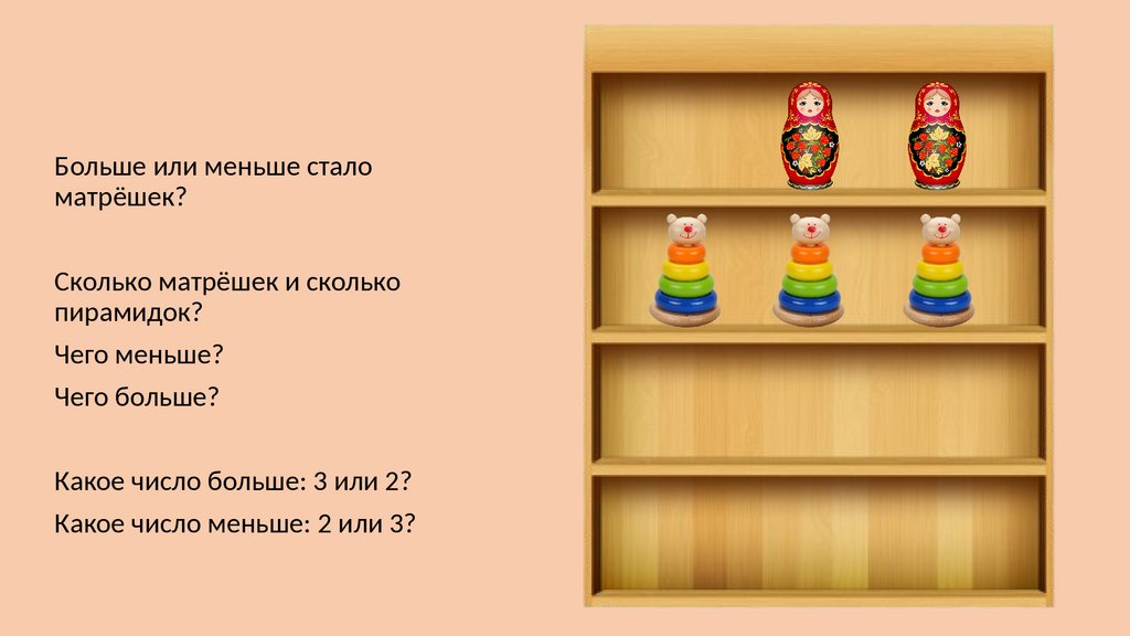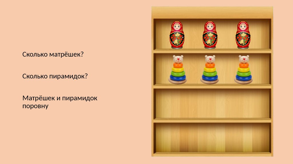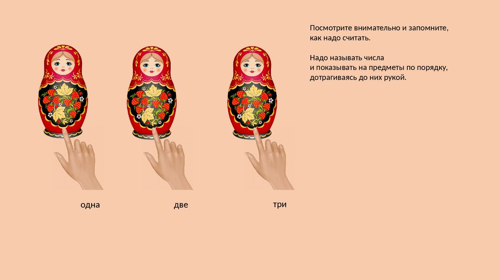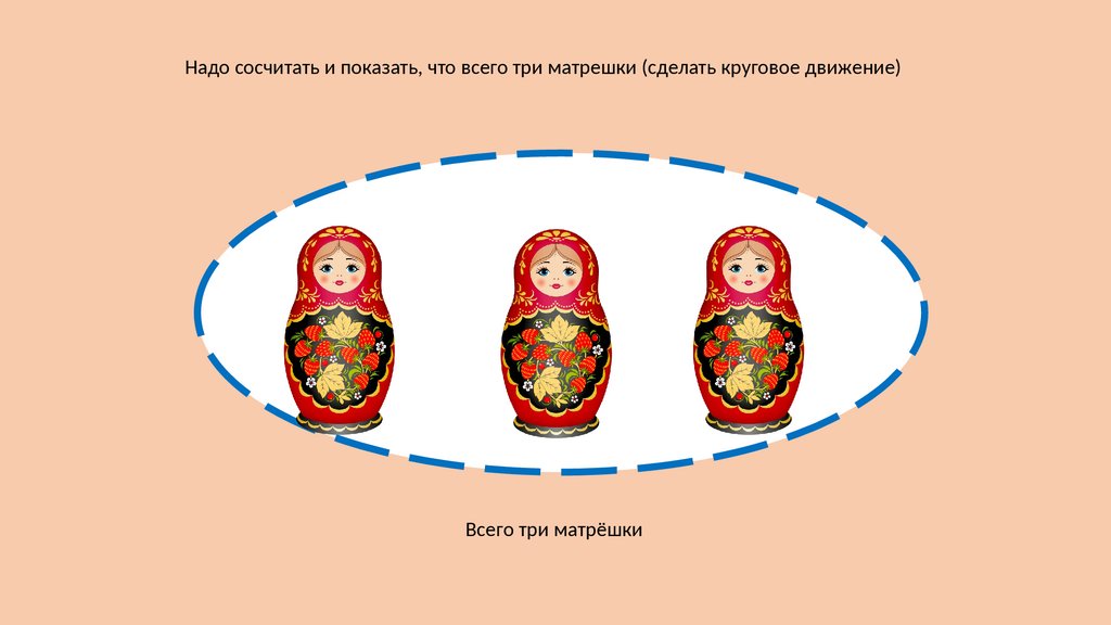 Надо сосчитать и показать, что всего три матрешки (сделать круговое движение)Всего три матрёшки