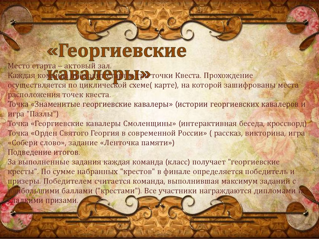 Точка «Орден Святого Георгия в современной России» ( рассказ, викторина, игра