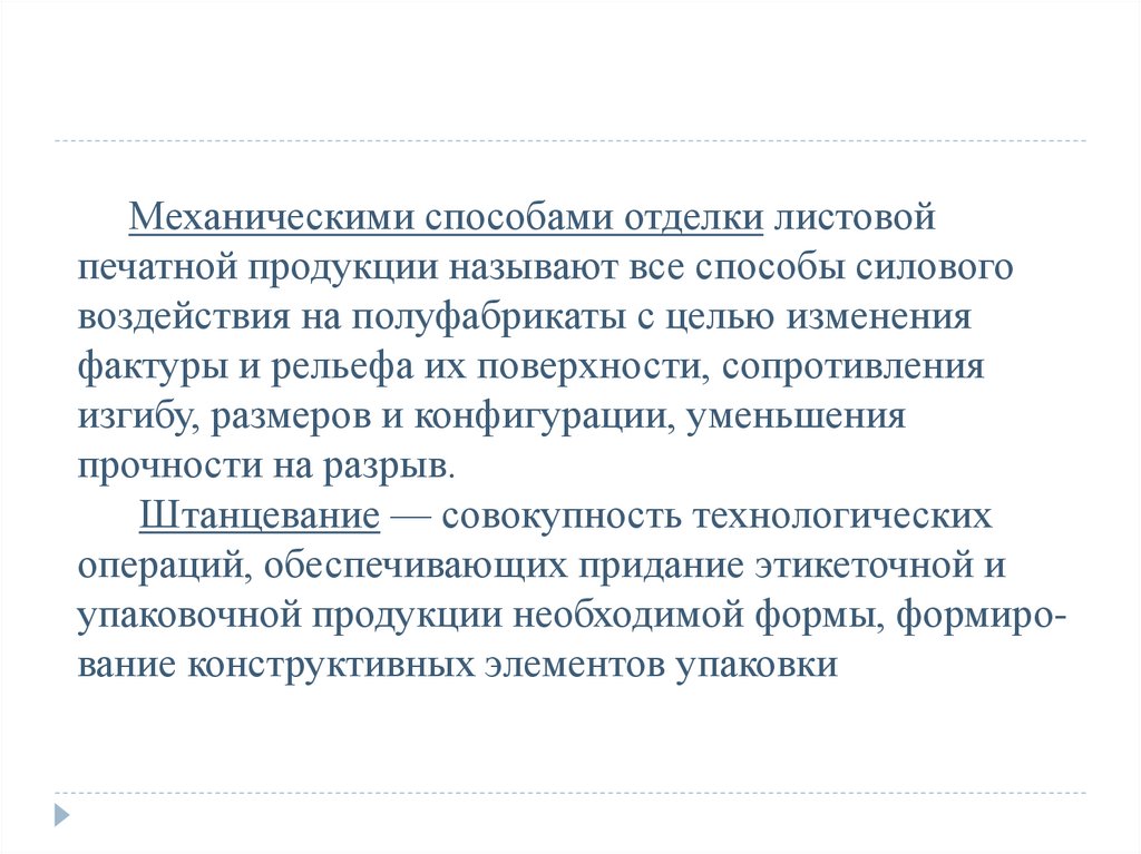 Механическими способами отделки листовойпечатной продукции называют все способы силового