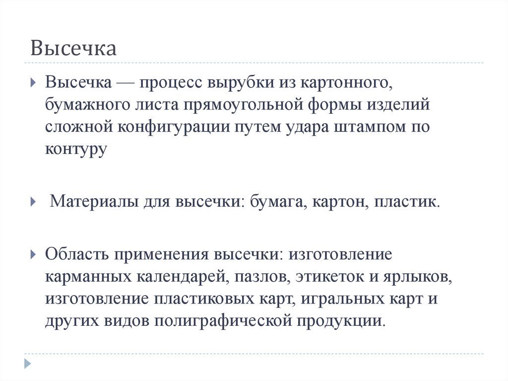 ВысечкаВысечка — процесс вырубки из картонного,