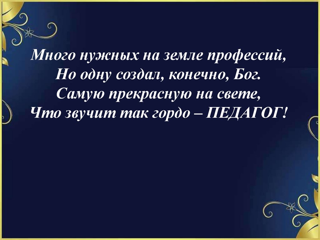 Много нужных на земле профессий,Но одну создал, конечно, Бог.