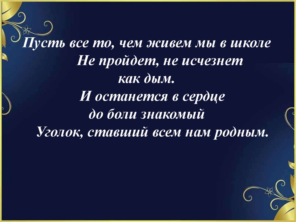 Пусть все то, чем живем мы в школеНе пройдет, не исчезнет