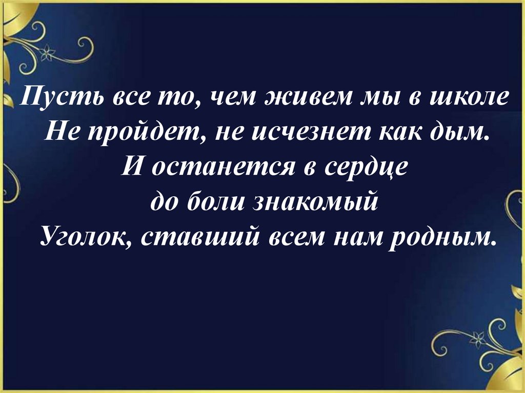 Пусть все то, чем живем мы в школеНе пройдет, не исчезнет как дым.