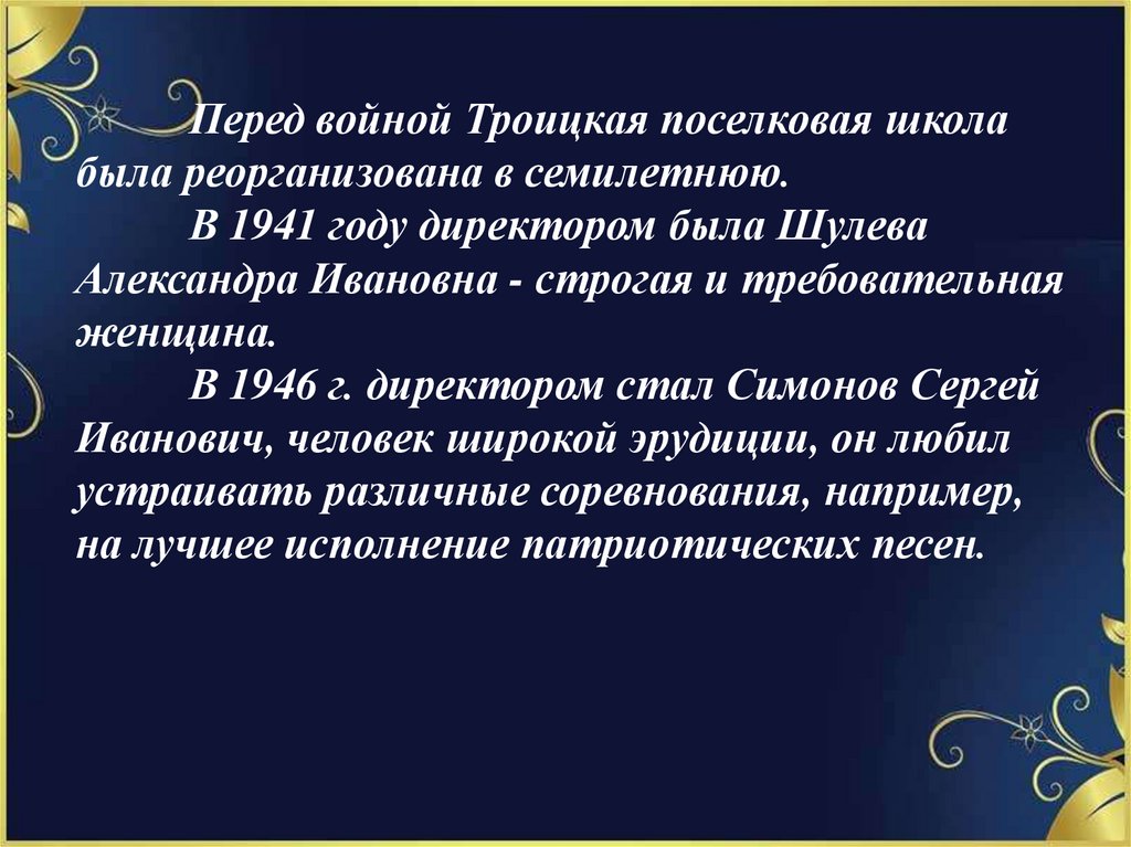 Перед войной Троицкая поселковая школабыла реорганизована в семилетнюю.