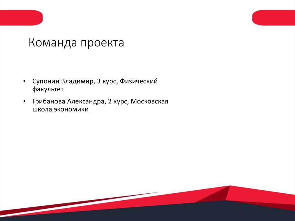 Команда проекта• Супонин Владимир, 3 курс, Физический