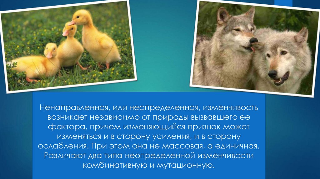 Ненаправленная, или неопределенная, изменчивостьвозникает независимо от природы вызвавшего ее