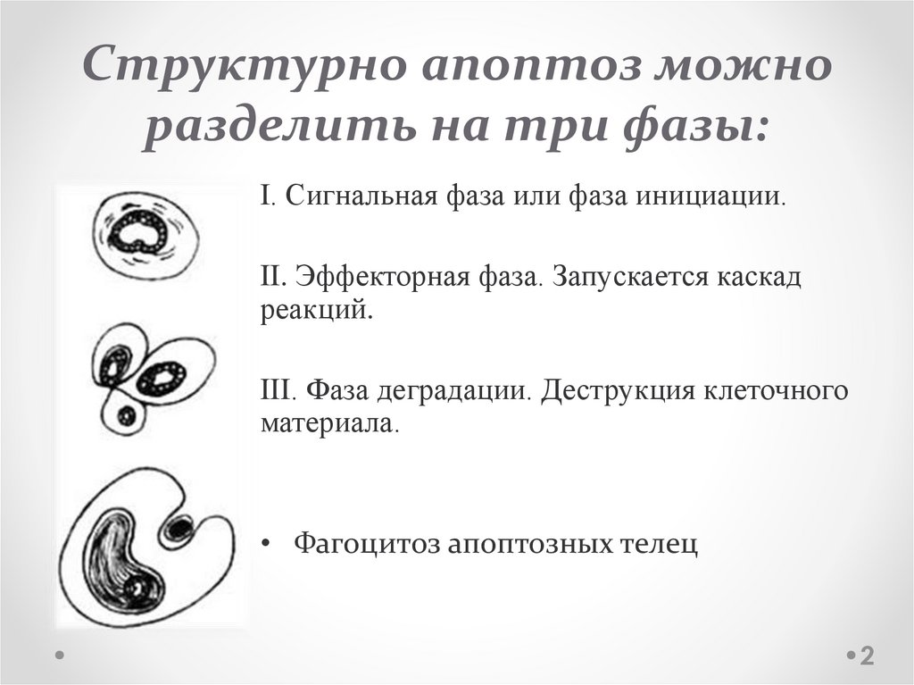 Структурно апоптоз можноразделить на три фазы: