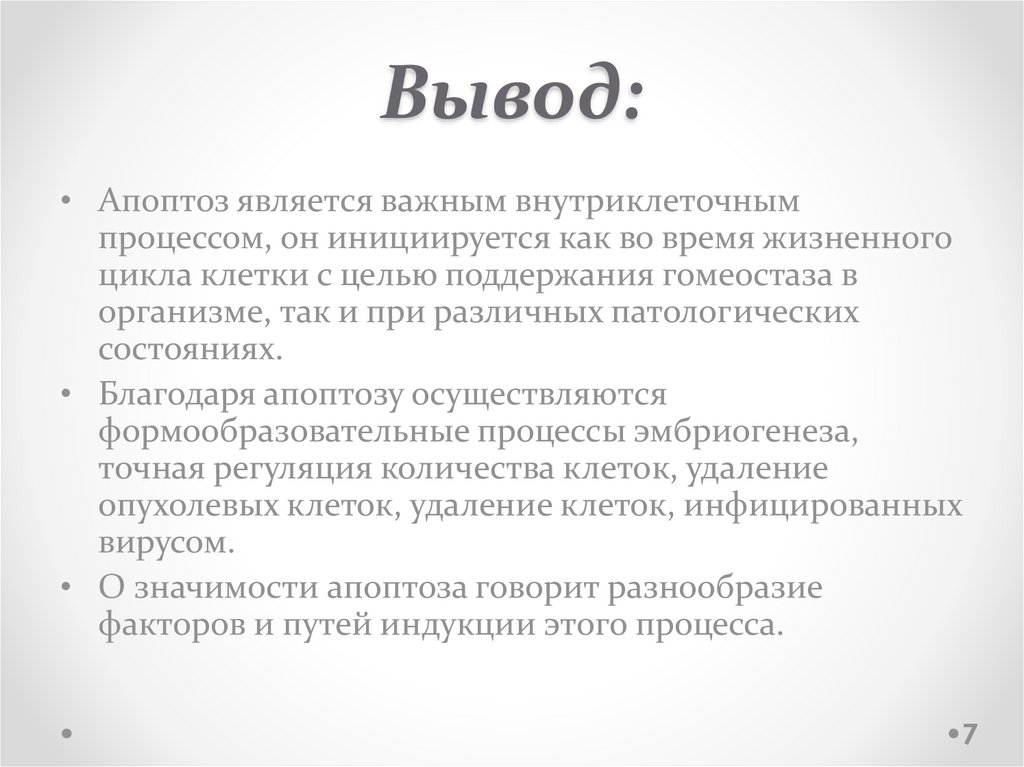 Вывод:• Апоптоз является важным внутриклеточным