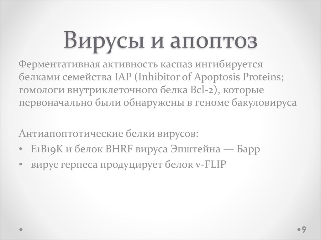 Вирусы и апоптозФерментативная активность каспаз ингибируется