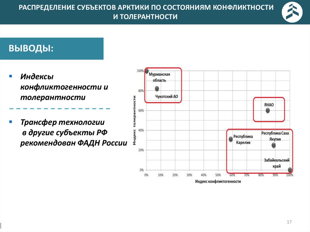РАСПРЕДЕЛЕНИЕ СУБЪЕКТОВ АРКТИКИ ПО СОСТОЯНИЯМ КОНФЛИКТНОСТИИ ТОЛЕРАНТНОСТИ