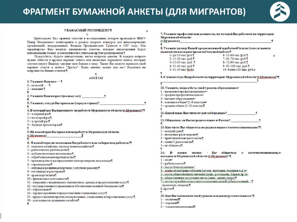 ФРАГМЕНТ БУМАЖНОЙ АНКЕТЫ (ДЛЯ МИГРАНТОВ)6