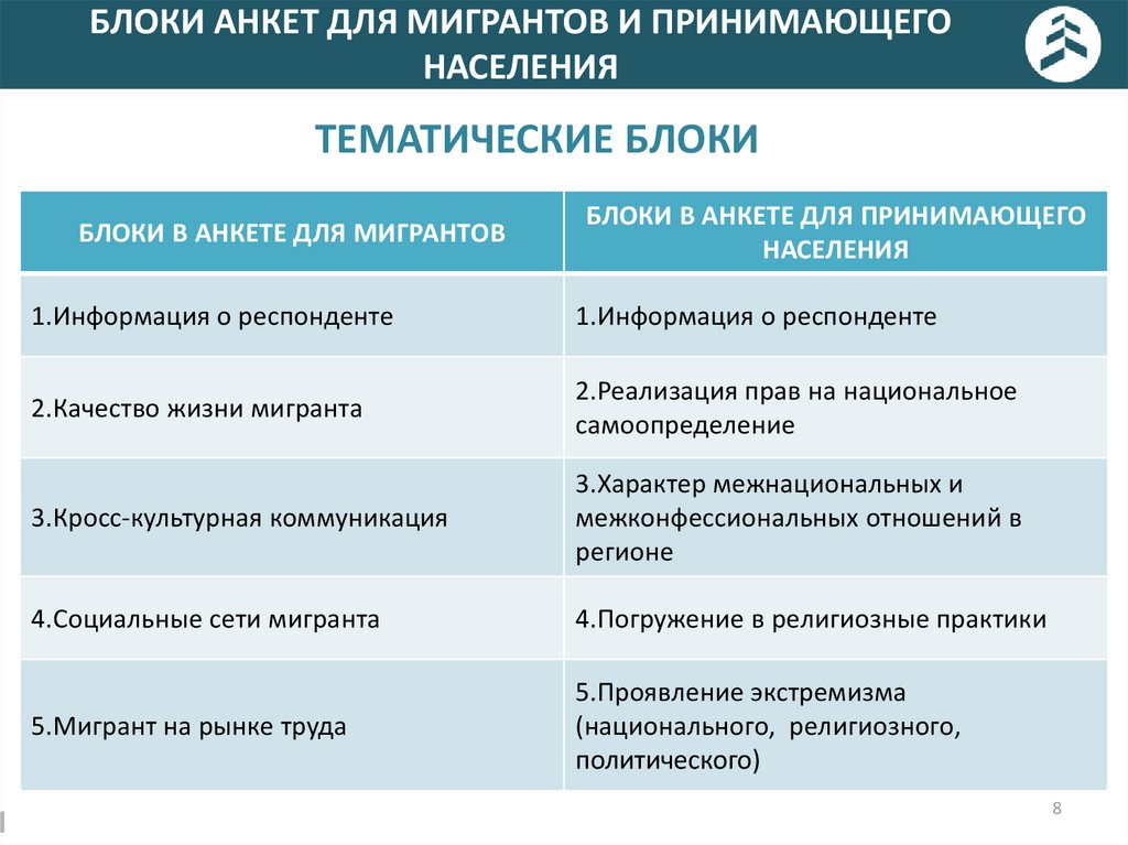 БЛОКИ АНКЕТ ДЛЯ МИГРАНТОВ И ПРИНИМАЮЩЕГОНАСЕЛЕНИЯ