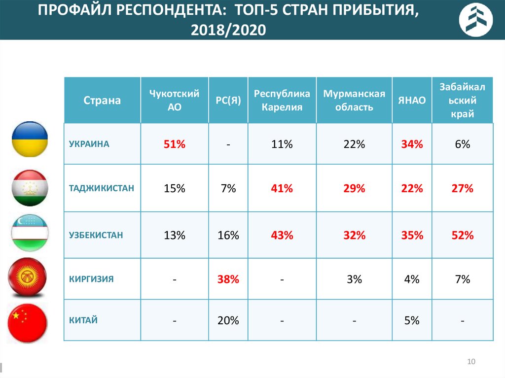 ПРОФАЙЛ РЕСПОНДЕНТА: ТОП-5 СТРАН ПРИБЫТИЯ,2018/2020