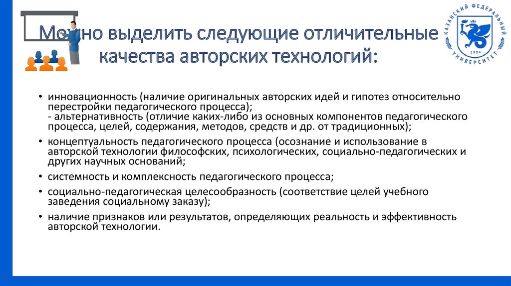 качества обучения. Кроме того, авторская педагогическая технология, должна