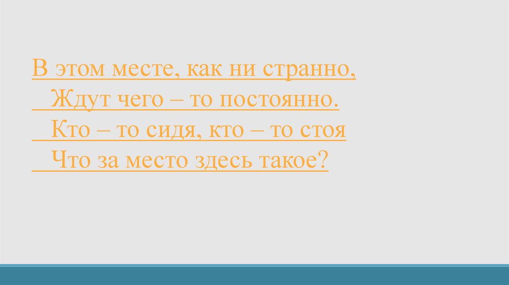 В этом месте, как ни странно,Ждут чего – то постоянно.