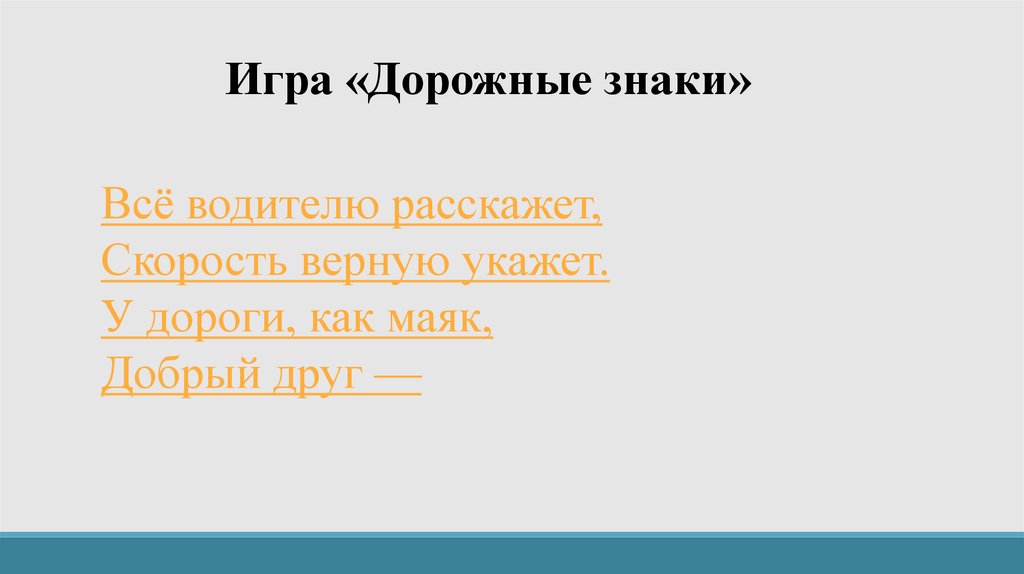 Игра «Дорожные знаки»Всё водителю расскажет,