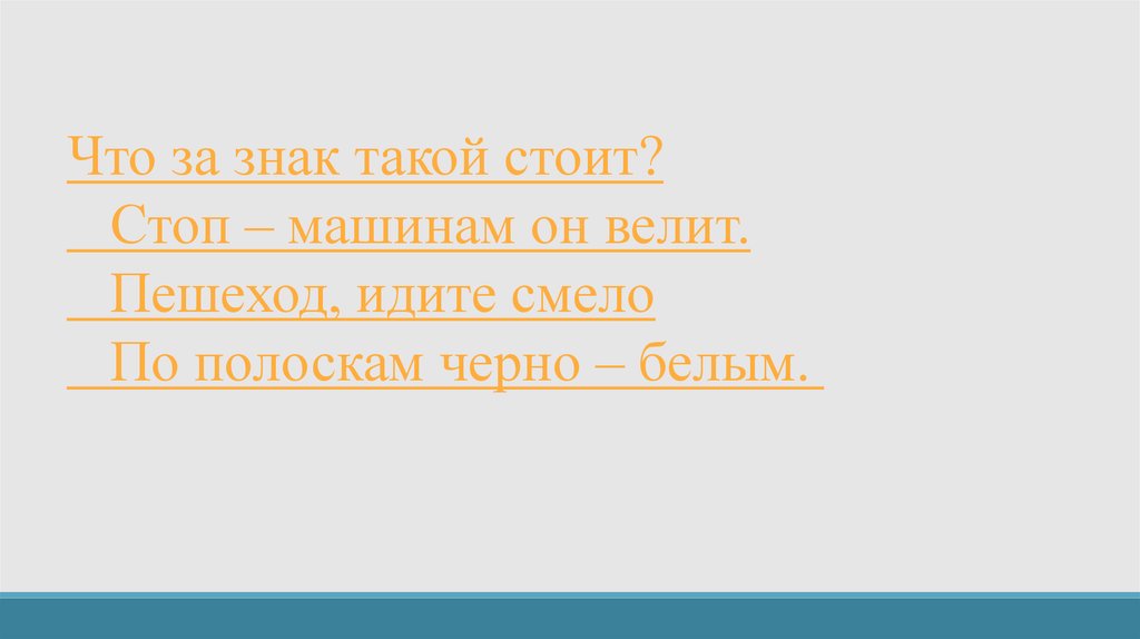 Что за знак такой стоит?Стоп – машинам он велит.