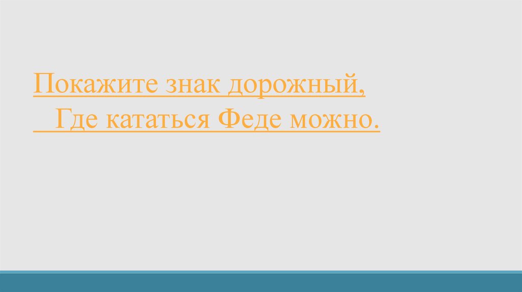 Покажите знак дорожный,Где кататься Феде можно.
