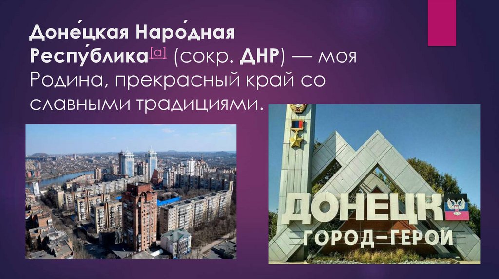 Доне́цкая Наро́днаяРеспу́блика[a] (сокр. ДНР) — моя
