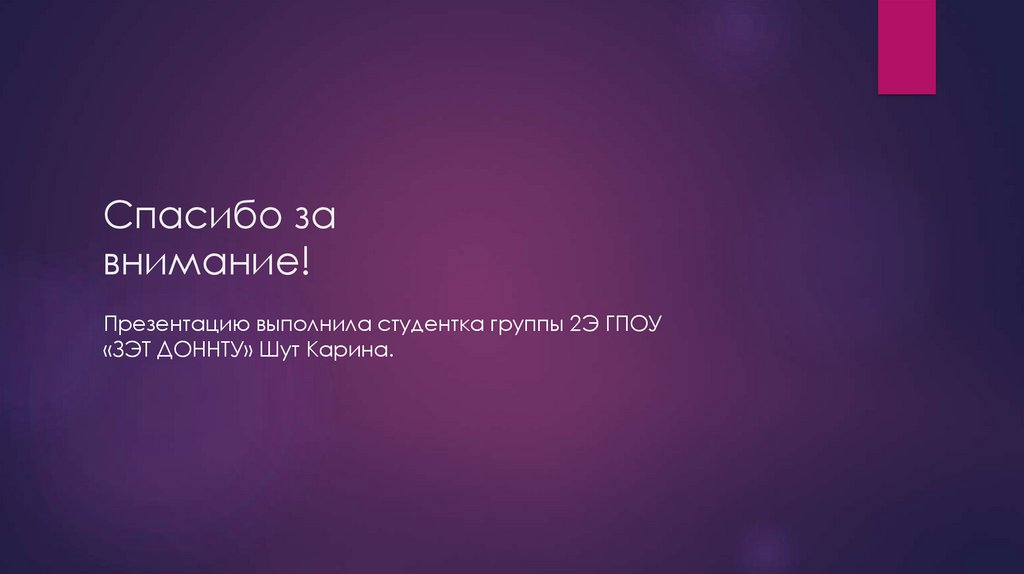 Презентацию выполнила студентка группы 2Э ГПОУ