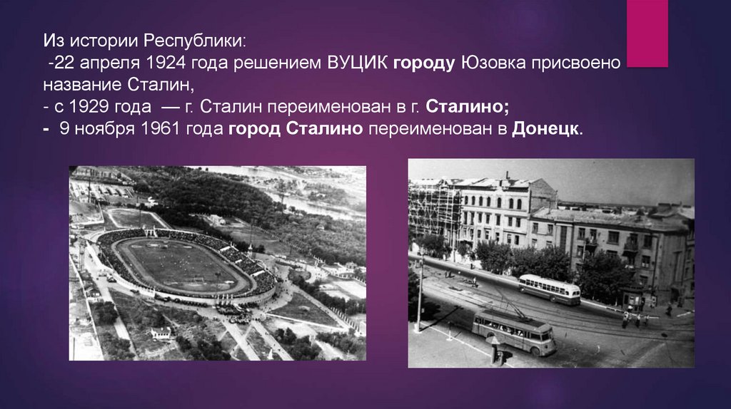Из истории Республики:-22 апреля 1924 года решением ВУЦИК городу Юзовка присвоено