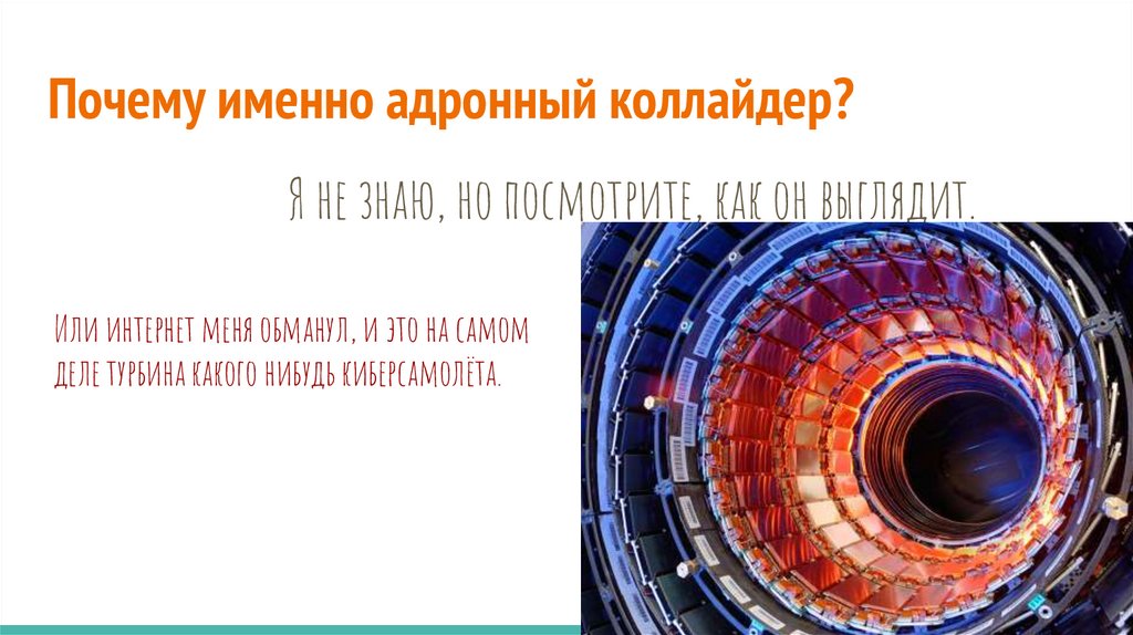 Почему именно адронный коллайдер?Я не знаю, но посмотрите, как он выглядит.