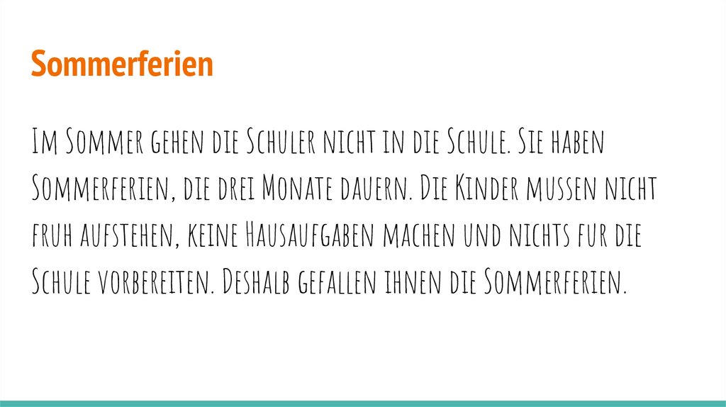 SommerferienIm Sommer gehen die Schuler nicht in die Schule. Sie haben