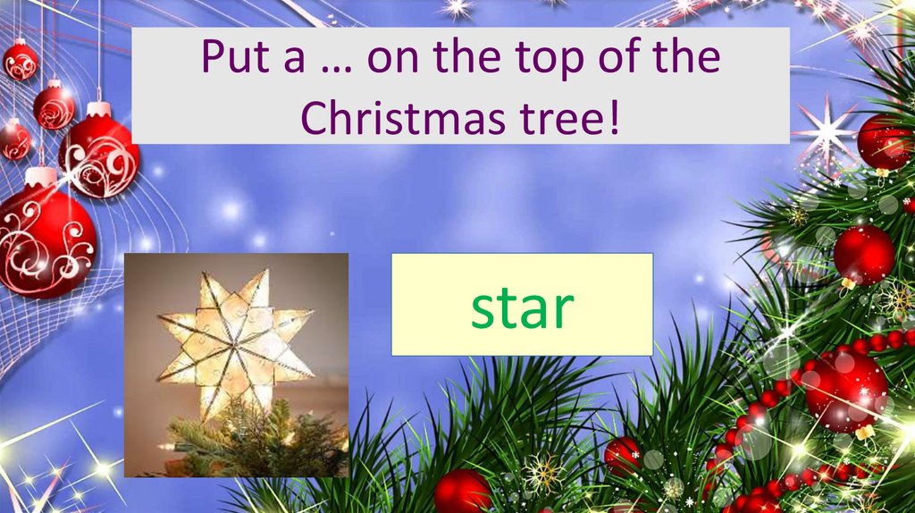 Put a … on the top of theChristmas tree!