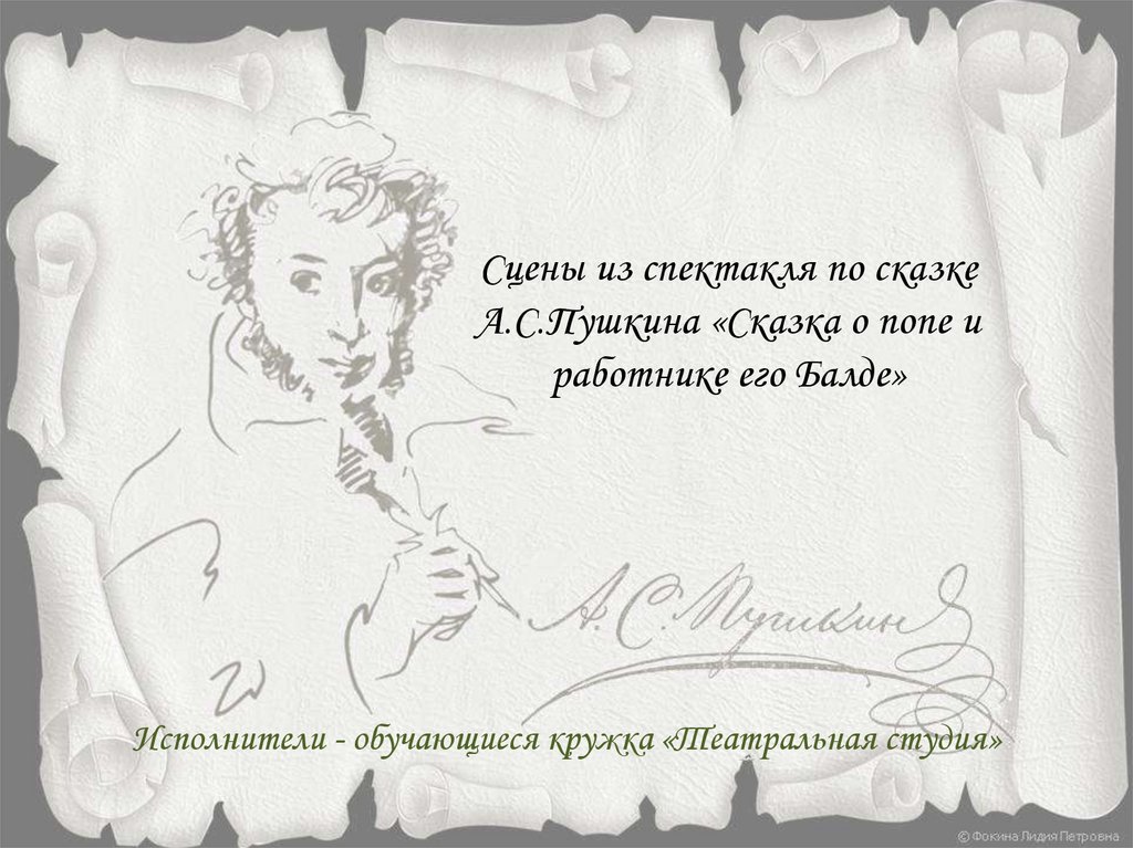 Сцены из спектакля по сказкеА.С.Пушкина «Сказка о попе и
