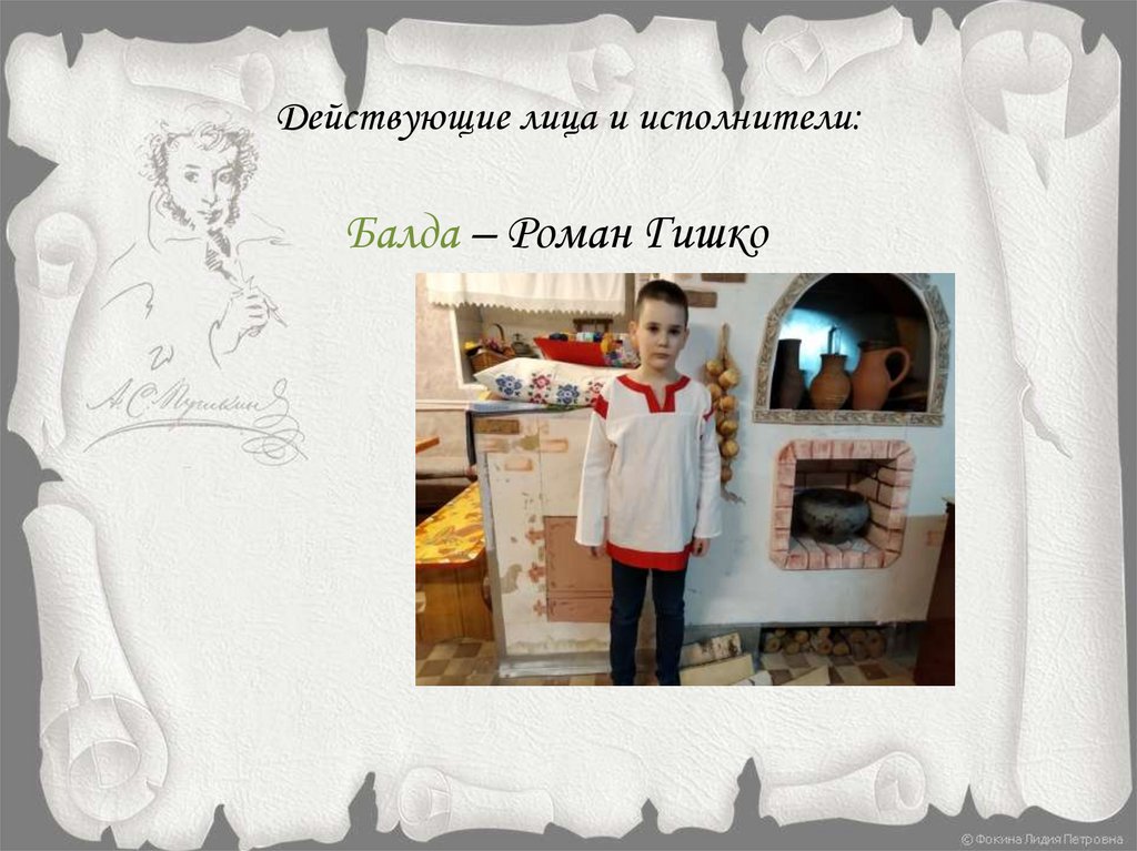 Действующие лица и исполнители:Балда – Роман Гишко
