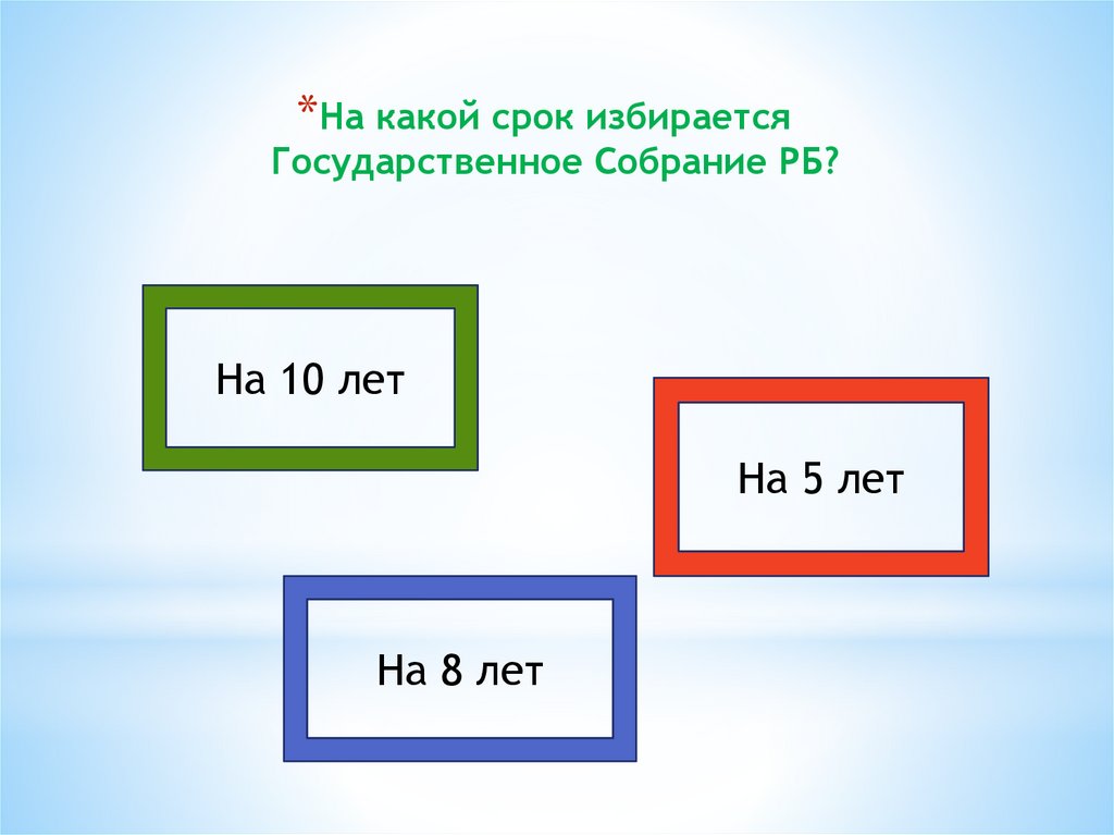 *На какой срок избираетсяГосударственное Собрание РБ?