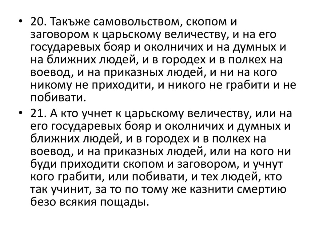 • 20. Такъже самовольством, скопом изаговором к царьскому величеству, и на его
