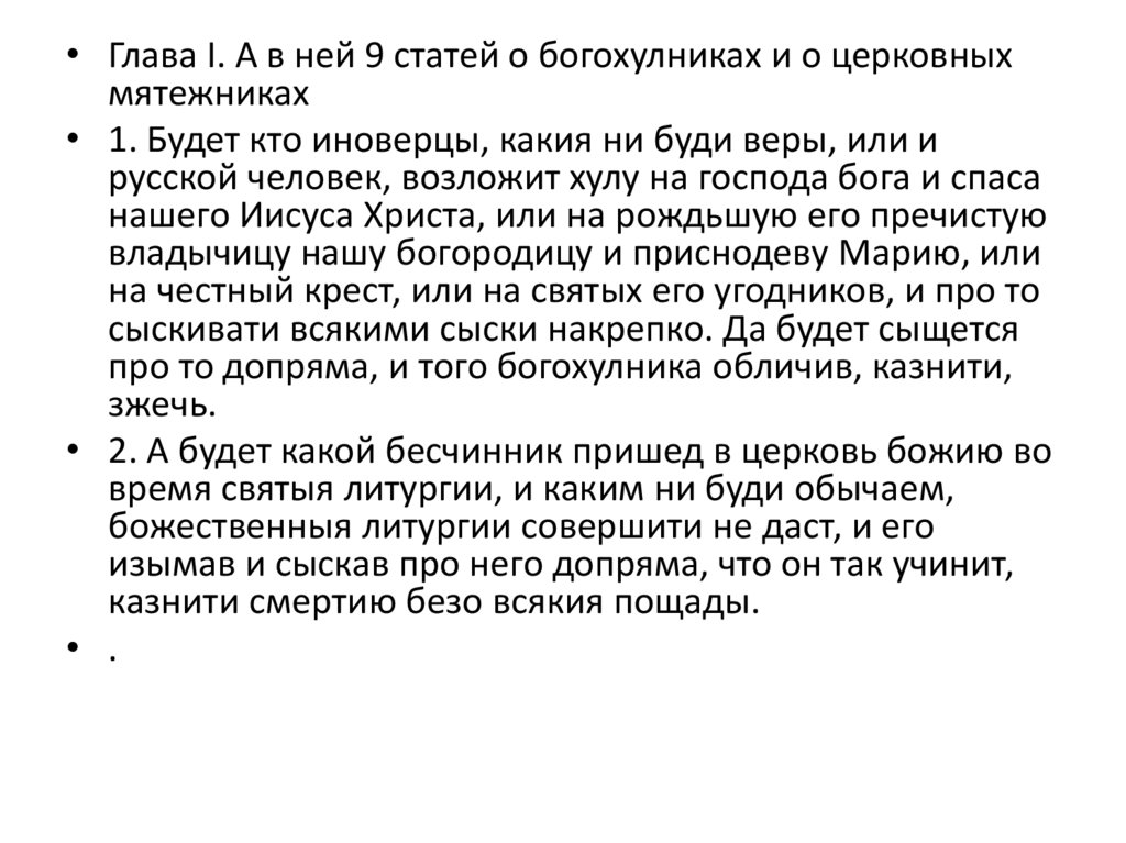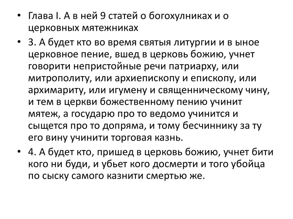 • Глава I. A в ней 9 статей о богохулниках и о церковныхмятежниках